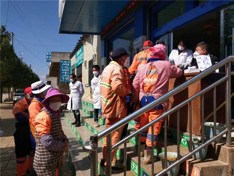 師宗惠康大藥房捐贈了價值2000元的消毒液分配給11個村(社),免費為20名環(huán)衛(wèi)工人發(fā)放了口罩,組織人員每天為集鎮(zhèn)內(nèi)的部分公共場所進行1次集中消毒。