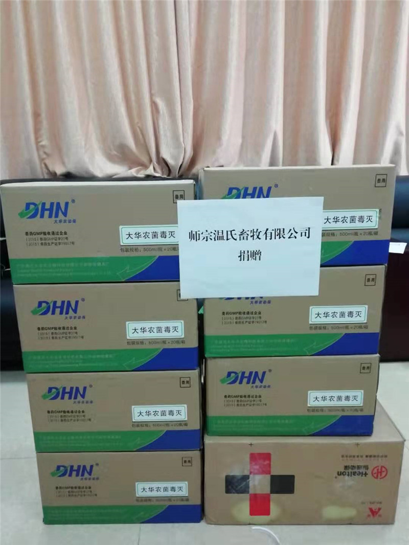 師宗溫氏畜牧有限公司依托企業(yè)資源優(yōu)勢,捐贈了價值6000元的消毒物資,幫助大同街道及時解決了物資緊缺的燃眉之急。