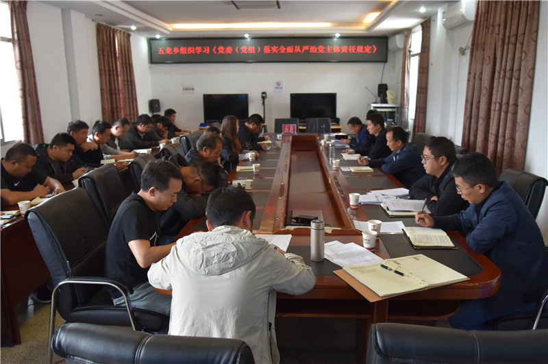 4月26日上午,五龍鄉(xiāng)組織學(xué)習(xí)《黨委(黨組)落實(shí)全面從嚴(yán)治黨主體責(zé)任規(guī)定》,鄉(xiāng)黨政領(lǐng)導(dǎo)班子、各中心、站、所負(fù)責(zé)人等20余人參加學(xué)習(xí)。