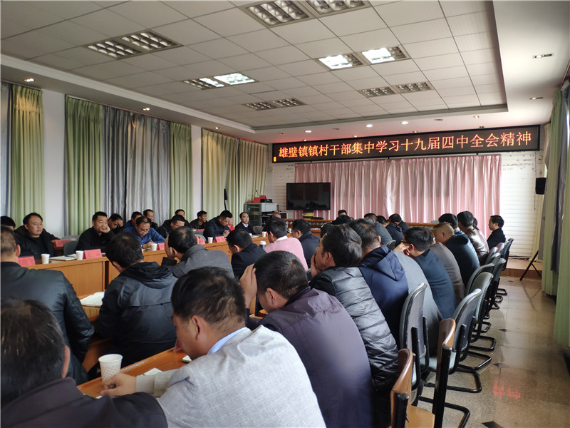 11月26日,雄壁鎮(zhèn)組織全體鎮(zhèn)村干部集中學(xué)習(xí)了黨的十九屆四中全會(huì)精神,進(jìn)一步推進(jìn)“不忘初心、牢記使命”主題教育。