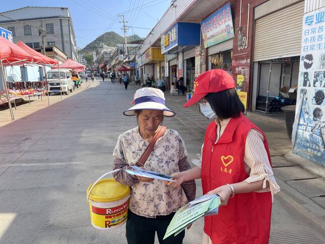 另一組分散在集鎮(zhèn)上向過往行人發(fā)放宣傳材料并講解相關(guān)知識“愛國衛(wèi)生是我們每一個人的事情,每個人都是自己健康的第一責(zé)任人,在日常生活中要主動學(xué)習(xí)科學(xué)的健康知識,行文明事,做文明人,積極舉報并主動糾正不衛(wèi)生、不文明的行為,一起為我們衛(wèi)生縣城的鞏固出一份力”。