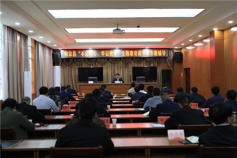 9月26日,師宗縣開展“不忘初心、牢記使命”主題教育讀書班專題輔導(dǎo),縣委書記龔加武以《黨員干部要以擔(dān)當(dāng)作為踐行初心使命》為題為全縣縣級(jí)領(lǐng)導(dǎo)作專題輔導(dǎo)。