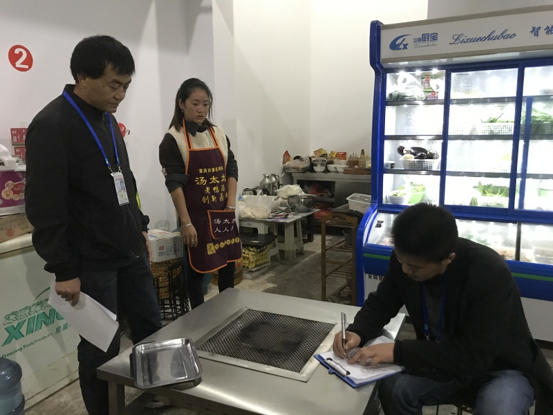 此次行動共分為13個檢查組,每組按照劃分的范圍,對區(qū)域內(nèi)的“燒烤”、“串串”店及攤點進行全面檢查,重點檢查食品經(jīng)營許可證、從業(yè)人員健康證、食品原料索證索票、餐具消毒保潔設施、防塵防蠅、食品加工制作等情況。